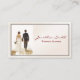 En affärskort design med en bröllopsfixaren i åtanke. Det visar en brud och en groom som håller händer i gång i avstånd. En ren och enkel design med tunt svart gräns.