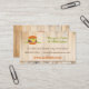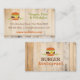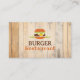 Ett affärskort för restauranger och grillar med en burgerikon som är utformad på en attraktiv träbakgrund.
