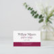 Detta Affärskort för Professionell av Burgundy & White Monogram skulle vara idealiskt för designers, Insida-dekoratörer, revisorer, skatterådgivare, ekonomiska rådgivare/rådgivare, verkstäder och många andra professioneller. Du kan ändra text i teckensnitt, färg, storlek och Plats genom att klicka på orangen "CUSTOMIZE IT". Det här affärskortet finns i olika storlekar och/eller i färg. Tack för besöket. Annat färg som är tillgängligt i denna konstruktion