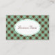 En mynta grönt och chokladbrun gingham mönster dekorerar det professionell affärskortet. Anpassa det här affärskortet till kostym efter dina behov. Använda det här affärskortet för ett litet företag, bagerier, kandislag, sötbutiker, choklad, gourmet mat. glass, catering, catering, in, bed and frukosten, daghem, stylist, hårsalon, kosmetolog, florist, avtalade tider osv.. - Formgivningen kommer från originalteckningen.