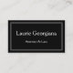 Den här moderna, rena och enkla utformningen av affärskortet har en svart bakgrund och en treradig gräns. Den skulle kunna användas av en professionell som advokat, notarie, advokat eller advokat. Namn, yrke och kontaktuppgifter kan vara personlig.
