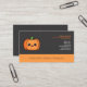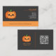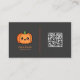 Ett affärskort för grått och orange i mörk med en söt pumpa i Kawaii stil, QR-kod och tagline! För roliga företag, lantbruk, grönsaksförsäljare, dekoration, försäljning av kostymer, trädgårdsmästare och så vidare!