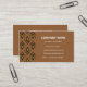 Ett mer formellt affärskort med ett mönster av "fleur-de-lys" i svart och chokladbrun på en brunt baksida av kaffe, med vita bokstäver. Redo att anpassa med egna detaljer.