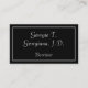 Den här enkla, elegant- och modernt affärskortet har en svart bakgrund och en vit gräns i dubblan. Den skulle kunna användas av en professionell som advokat, advokat, advokat eller advokat. Namn, yrke och kontaktuppgifter kan vara personlig.