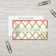 Det här affärskortet har en röd och grönt trellis med mycket subtila pektrilar av löv. Jag har inkluderat mallar på framsidan och baksidan för egen information och anpassning. Det finns flera pappra alternativ tillgängliga. Se till att jämföra tjockleken och glansen som skulle vara högerna för ditt företag. Alla poster fylls av Zazzle och är till 100 procent nöjda. Kontakta kundsupport för Zazzle via https://goo.gl/nCgptf om du vill ha dina beställnings- och leveransproblem