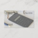 Ett affärskort som visar ett par glasögon, checkhäfte, insättningskvitto, kalkylator och två hundra dollar växlar. Detta kan användas för en finansplanerare eller någon som utför skuldkonsolidering.
