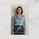 Elegant Script Monogram Logotyp Photo Affärskort. Modern, snyggt, anpassningsbar färg lodrät-affärskort med ett utfallsfoto på fullt på framsidan med ett monogram för calligraphy swash-skript för elegant med ett eller två brev som fotoöverlägg med namn och firma, titel eller tjänst. Baksidan duplicerar texten på framkortet och din kontaktinformation. ASSISTANS: Om du vill ha hjälp med designändringar eller anpassning eller om du vill samordna objekt kontaktar du designern INNAN ORDERING via fliken Zazzle Chatta MESSAGE eller e-postmeddelandet makeitaboutyoustore@gmail.com.