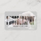Trendig, modernt fotografiskt affärskort. Designen innehåller ditt foto, avklippt skript av typen "fotografi", namn på framsidan. Anpassa ytterligare med dina detaljer på baksidan.