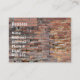En bakvägg skapar en fantastisk bakgrund för det här organiska, grymmformaterade affärs- eller profilkortet. Inner City stil är en stadsplanering för alla stadsbaserade företag som vill förmedla en ärftlig och etablerad känsla. Det här affärskortet är idealiskt för målare, konstnärer, renoverare, arkitekter, konsgrupper, konstruktörer och stadspopéer. Anpassa den här kortdesignen och gör den till din egen!