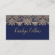 Affärskort med vacker snyggt i marinblått, med grafik med ett guld-tonsutseende snöre, längst fram på kortet. Anpassa texten till kostym som ditt företag behöver. Ett fint stående kort till henne.