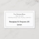 Denna utformning av det enkla affärskortet har en professionells namn, en organisation namn, en titel för professionellens position och kontaktuppgifter som kan vara personlig. Den har också en dubbla-line gräns. Affärskort som dessa kan användas av en professionell som en expert på affärsrätt eller en jurist.