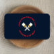 Snyggtens husmålares målningspenselemblem stil logotyp med två genomkorsade målarpenslar. Tungt blå bakgrund med röd text. Kontakta mig på maurareed.designs@gmail.com om du vill ha ytterligare matchande material från marknadsföring. Om du vill ha mer fördefinierade logotyper går du till logoevolution.co. Ursprunglig design av Maura Reed.