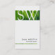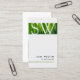 I det här enkla affärskortet för professionell visas ditt namn och din titel längst ned på framsidan mot en benvit bakgrund. Brev i monogrammet visas överst, över en fet remsa som består av grönt blad av gräs, som blandas in i kortets bakgrund. Din huvudsakliga kontaktinformation visas på baksidan. Perfekt för entreprenörer, bygg- och anläggningsarbeten, reparation, byggnad, kvalificerade yrkesutövare, men denna utformning är lämplig för de flesta företag eller yrken som behöver göra stora insatser med en enkel minimalistisk utformning. Anpassa kortet omedelbart med ditt namn och din information.