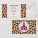 Ett affärskort med en leopardbakgrund med rosa trim. Svart text över ren vit. Anpassa med din information. Motstående funktioner som matchar leopard print bakgrund. logotypen av Rosa skolhus inuti cirkelformade rosa ram.