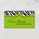 Affärskortet Lime Gree Zebra tryck Animal Mönster Visitkort