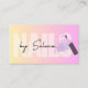 Den pulserande gradientbakgrunden som övergår från gult till rosa avspeglar kreativitet och energi, skapar att öga fångar upp den. I illustrationen av ett nailpolskt flaska överst betonas ytterligare ett samband med skönhet och glans. Det som gör affärskortet speciellt är dess perfekt blandning av funktionalitet och estetik.Varje inslag på kortet är omtänksamt designat för att förmedla professionalism och stil, skapar ut det i en rad affärskort.