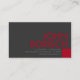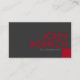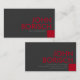 Modern minimalism Mörk Grått Business Card-mall med röd kvadrat. Den här designversionen har också ett stort fet rött teckensnitt för namn. Mycket contemporary och unik smidig design.