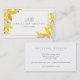 Ge ditt varumärke lite skönhet i blommigten i riken. Hand målade vattenfärgen gula blommor med tips om orange, lila och grått som omger skripttypografi som har monogram initialer, fullt namn och ockupation på kortets framsida och affärsinformation längst bak på kortet.