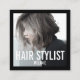 Hairstylist, modernt affärskort för fotokvadrat. Eleganten och den rena layouten med ett tunt ram på framsidan och baksidan av det här affärskortet gör att du kan visa ditt eget foto på framsidan av kortet. Ert yrke och namn är typiskt för det moderna raka, djärva typografiet brev. Utformning som är lämplig för hårstilister, makeup artists, bloggares fotografer och andra kreativ. Fotot på affärskortet är bara ett exempelfoto. Överför ditt eget. Designad av Luxbelles design.