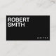 Ett modernt, enkelt svart och vitt affärskort med plats för ditt namn, yrke, medieferens för social, webbplats, utskick av adress och mobilt nummer.