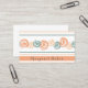 Moderna virvlar och rand i persikor, korall och blått. Namn på framsidan i elegantens teckensnitt, kontaktinformation på baksidan.