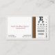 En affärskort som visar ett öga-diagram som används för synkontroll. Denna konstruktion kan användas av en optometriker eller en som utför laseroperation.