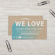 Anpassa det här marknadsföring-kortet för trendiget. Detta är perfekt för ett e-handelsföretag som en butique-, Etsy-butik eller något annat litet företag. Det innehåller formuleringen "WE KÄRLEK" och har anpassade att förklara ytterligare detaljer. Den omvända sidan kan användas för att visning personligens logotyp. Den här produkten visar intresse för att ansluta till kunder genom att uppmuntra konsumenterna att meddela dig och följa din verksamhet på social-medier med informationen som finns bredvid medieikonerna Facebook, Instagram och YouTube social.