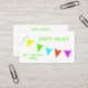 Det här affärskortet i party-butiken har en färgstark banderoll på framsidan. Jag har inkluderat mallar på framsidan och baksidan för egen information och anpassning. Det finns flera pappra alternativ tillgängliga. Se till att jämföra tjockleken och glansen som skulle vara högerna för ditt företag. Alla poster fylls av Zazzle och är till 100 procent nöjda. Kontakta kundsupport för Zazzle via https://goo.gl/nCgptf om du vill ha dina beställnings- och leveransproblem