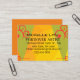 Personlig det här företaget med din egen företagsinformation. Vi presenterar en pulserande nyans av gult, orange och grönt i mitt affärskort, perfekt för röstkonst! Vare sig du är berättare, talskådespelare/skådespelare, dubbande artist, teckenskådespelare/skådespelare, audio bok-berättare, radioaviserare, poddsändningsvärd, kommersiell talang eller videospelsskådespelare/skådespelare, så talar detta kort mycket. Visa dig i branschen med vår dynamiska design och visa din talang och expertis. Öka ditt varumärke och locka målgrupper med varje ord. Kontakta oss i dag för att göra din röst hörd!