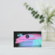 Affärskort med rosa och blå penseldrag gräns mot svart bakgrund.