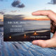 Ett vackert romantiskt affärskort med ljus på stranden vid solnedgången. Underbar för en researrangör eller agent eller ett företag som specialiserar sig på honungsmooner eller destinationsbröllop. Du kan också använda det som ett inmatningskort för bröllop för att ange bröllop webbplats.