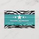 Affärskortet Teal Sassy Star Zebra tryck Visitkort