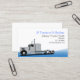 En påhängsvagn lastbil och en blå krökt formad grund utgör den viktigaste bilden av detta affärskort som är avsett för transportsektorn och transport. Ditt namn och din kontaktinformation visas djärvt i det övre hörnet av högerna. Telefonkortet perfekt för lastbil-förare.