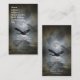 En ensam Underbar Blue Heron glider över svartbelyst vatten och skapar en mycket atmosfärisk utformning för detta outdoorsiga men ändå coola biz-kort. Bild skapades från nyligen tagna fotografier på Vancouver Island.