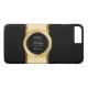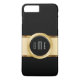 Elegant svart och guld smartphonefodral för iPhone 6 Plush med lyxdesigndetaljer som ser ut som guld digitalt tryckta på fodralet, tillsammans med monogramemblem som du kan anpassa och göra till ditt eget. Designad för användning av företagsproffs eller för privat bruk.