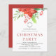 Budget Business Poinsettia Logotyp - julfest - inbjudan. Ett värde för pengarna som är mindre 4,5 x 5,6 tum i ett 110 g/m-kort med halvglöd, som har ungefär samma tjocklek som ett vykort. För din årliga julfest för företag för dina anställda eller för kunder och kunder för festliga händelser. Den här designen med din logotyp, har vackra röda vinterblommigtar och grön överst.