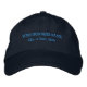 Affärstext som är broderad på marinkapsel keps