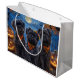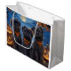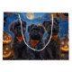 Släpp upp spookandan med den här eerie Halloween-designen med en hundar-förpackning under en mörk, månbelyst himmel, omgiven av flygande fladdermus och glödande pumpor. Perfekt för dem som kärlek en aning skrämmande roligt med sina hårigets vänner!