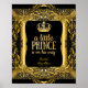 Affisch Baby Shower Pojke Lille Prins Krona Guld Folie Svart. En liten prins är på väg