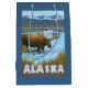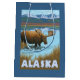 Alaska - affischen för älgdricksvattenvintage resor skapades i 2007. Detta avbildar visar platser från Alaska.