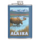 Alaska - affischen för älgdricksvattenvintage resor skapades i 2007. Detta avbildar visar platser från Alaska.