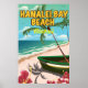 Hanalei Bay Beach-stranden Oahu Hawaii poster. Hanalei Bay Beach-Tecknadens semester poster.