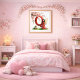 This delightful watercolor letter Q poster brings the charm of pond life to children's spaces, featuring an adorable tree frog that adds personality and nature education appeal. The graceful letter Q is rendered in rich red watercolor with elegant double gold trim borders creating dimensional sophistication. The circular form with its characteristic tail creates beautiful curves, and the letter features gorgeous ombre effects transitioning from deep crimson on the outer edges to bright coral-orange toward the center, with lovely watercolor pooling and organic texture throughout.