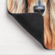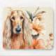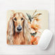 What a fun mouse pad and gift idea for dog lovers with a watercolor portrait of an Afghan Hound dog sitting against lovely peach colored lilies flowers.