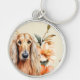 Afghan Hound Dog and Peach Lilies Rund Silverfärgad Nyckelring