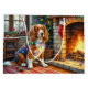 This elegant Christmas illustration features a regal Afghan Hound sitting beside a warm fireplace, wrapped in soft glowing Christmas lights with festive stockings hanging above. The breed’s iconic flowing coat and graceful posture add sophistication and beauty to this cozy holiday scene. Perfect for Afghan Hound lovers, holiday décor enthusiasts, and Zazzle shoppers seeking unique Christmas artwork that highlights their favorite breed.