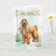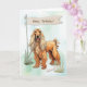 Detta afghanska årsloppskort för hound har en fin och värdig jacka och profil för rasen. Mot ett brinnande vattenfärgslandskap i himmel och gräsligt landskap, med en rustisk banderoll, är det ett sofistikerat men varmt sätt att önska någon speciell i grattis på födelsedagen.