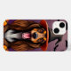 Lekfull, serie-inspirerad hund med ett livligt och vänligt uttryck. Hunden bär en klassisk häxhatt med en fladdrande brätte. Runt hunden finns Halloween-tematiska element, inklusive svarta fladdermöss och orange pumpor, som bidrar till den festliga atmosfären. Bakgrunden är en gradient av lila, som skapar en spöklik men ändå glad miljö. Den övergripande kompositionen kombinerar söta och fantasifulla designelement, vilket gör den perfekt för Halloween.