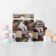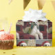En vacker afghansk hound-hund med långa, silkesaktiga päls-loungar på en röd sammetssoffa med en festiv julhatt