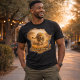 The warm savanna tones and textured, blended edges are designed to integrate naturally into the fabric, avoiding harsh borders and giving the print a worn-in, garment-ready feel. The gold-sand typography remains bold and legible on dark tees, reinforcing the message without overpowering the artwork.